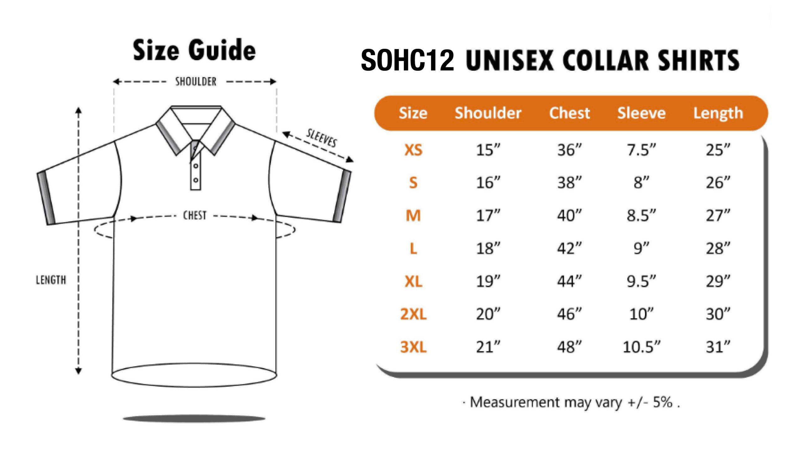 XS – 3XL