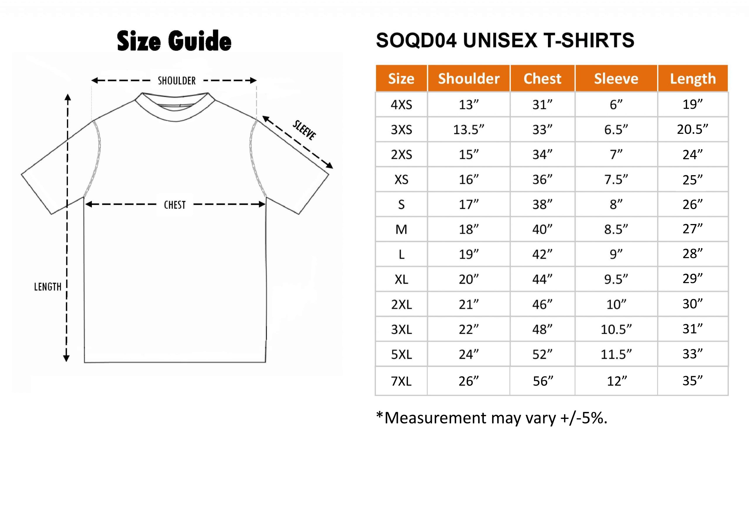 4XS – 3XL, 5XL, 7XL