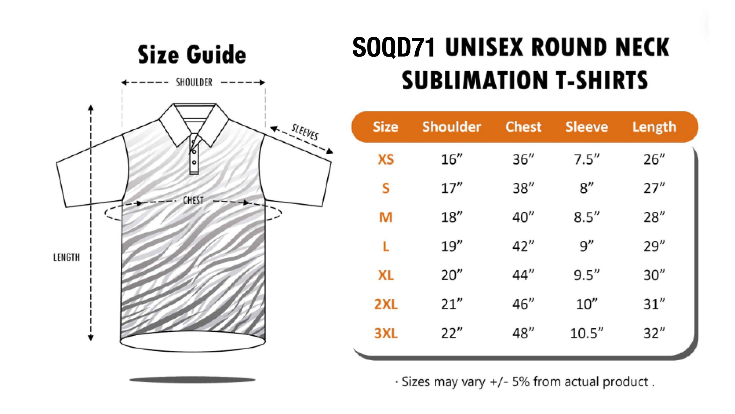XS – 3XL