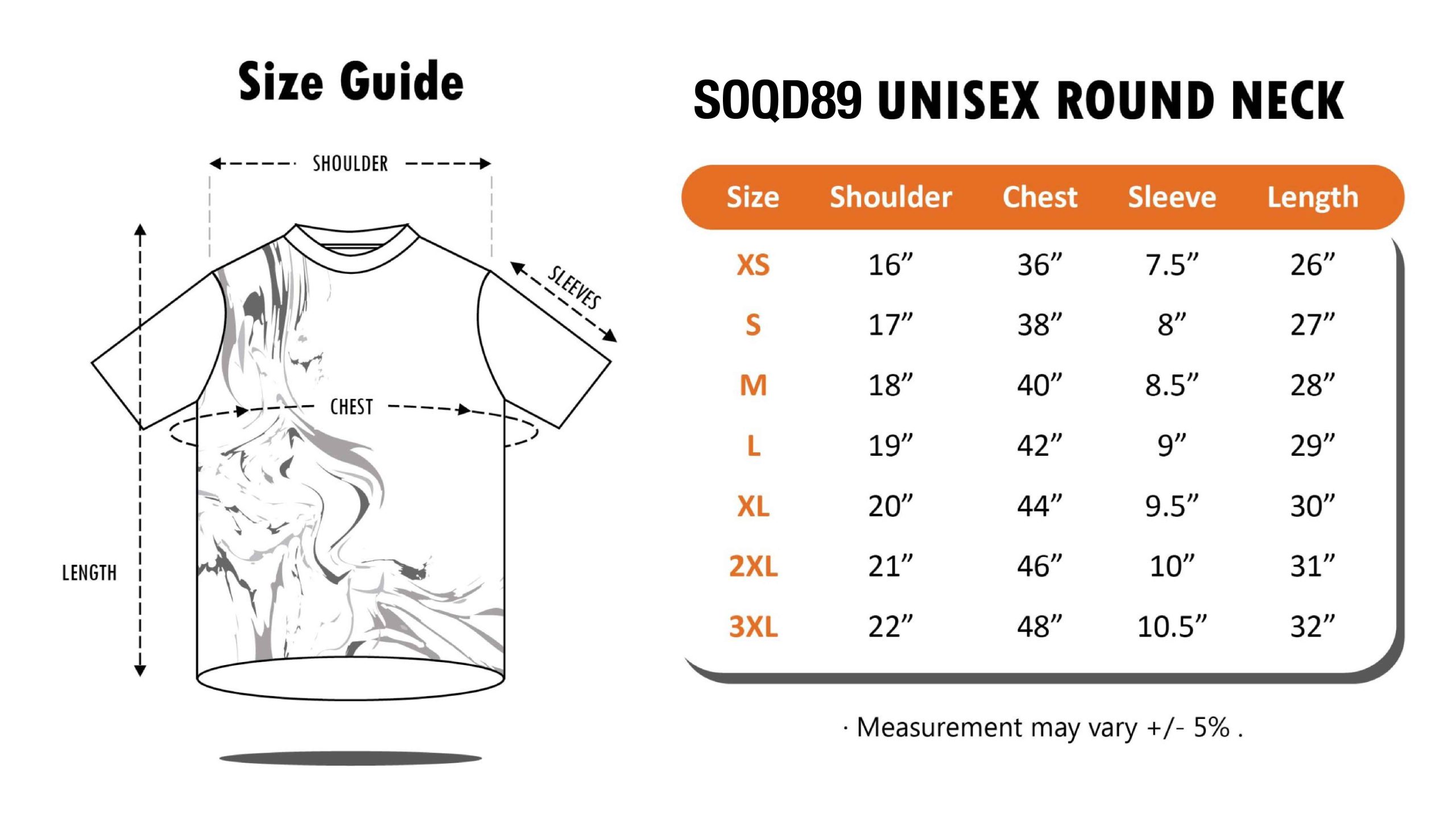 XS – 3XL